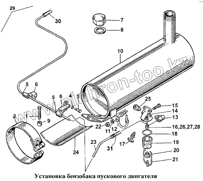 Каталог запасных частей к технике: ЧТЗ Т-170. Установка бензобака пускового двигателя