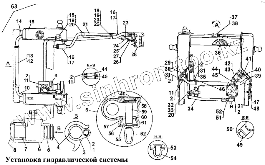 | 63 | 50-26-40-02СП | Установка гидросистемы на тракторы с баками без цапф с боковыми бонками под дополнительные фары |