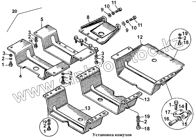 Каталог запасных частей к технике: ЧТЗ Т-170. Установка кожухов