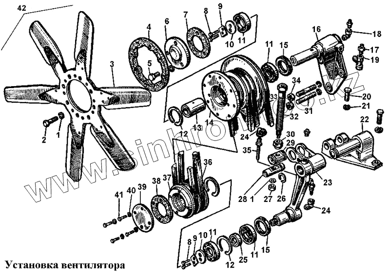 Каталог запасных частей к технике: ЧТЗ Т-170. Установка вентилятора