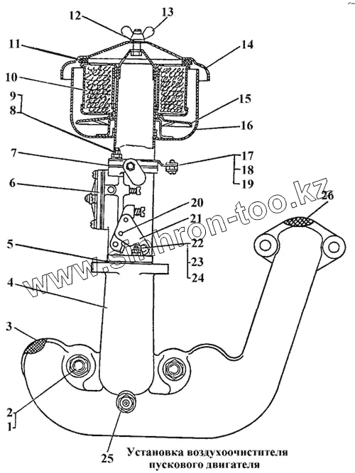 Каталог запасных частей к технике: ЧТЗ Т-170. Установка воздухоочистителя пускового двигателя
