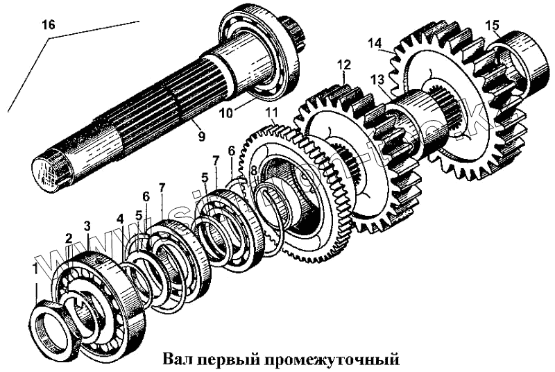 Каталог запасных частей к технике: ЧТЗ Т-170. Вал первый промежуточный