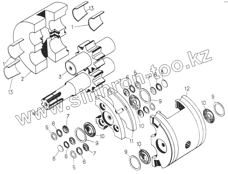 Каталог запасных частей к технике: ЧТЗ Т-170М-01. Детали насоса НШ 100А-3Л (3ЛТ)