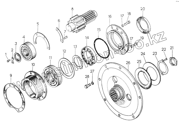 Каталог запасных частей к технике: ЧТЗ Т-170М-01. Фланец ведущий с деталями