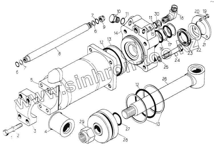 Каталог запасных частей к технике: ЧТЗ Т-170М-01. Гидроцилиндр задней навески