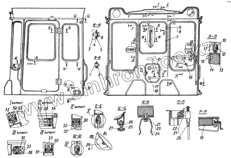 Каталог запасных частей к технике: ЧТЗ Т-170М-01. Кабина. Детали кабины