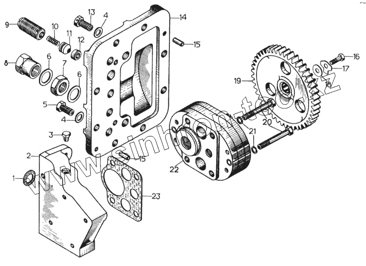 Каталог запасных частей к технике: ЧТЗ Т-170М-01. Насос НМШ-25 с деталями системы смазки