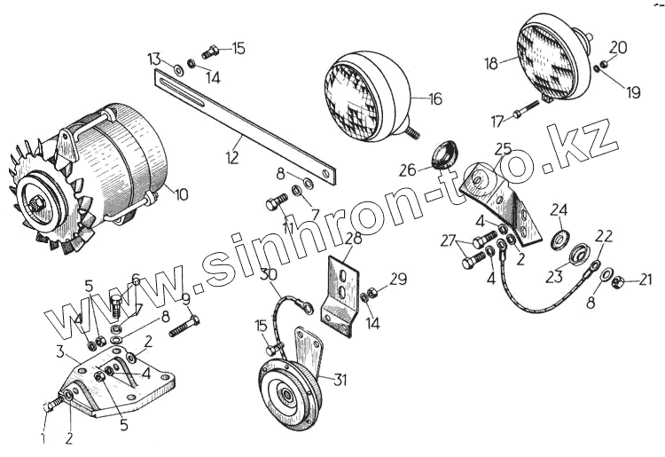 Каталог запасных частей к технике: ЧТЗ Т-170М-01. Установка генератора, сигнала и фар