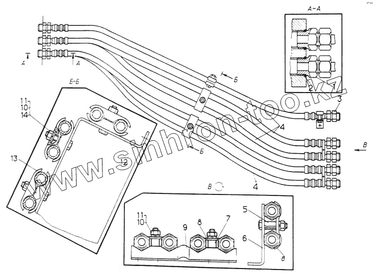 Каталог запасных частей к технике: ЧТЗ Т-170М-01. Установка рукавов управления задним механизмом навески