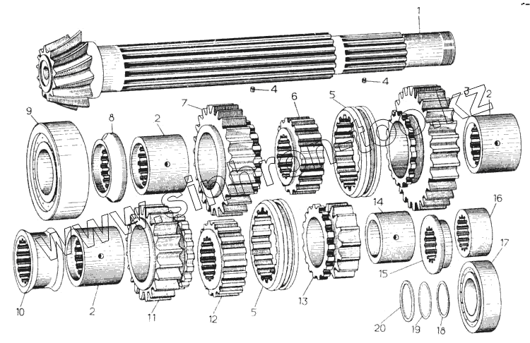 Вал нижний 18-12-156 с шестерней 16354, комплект в запчасть
