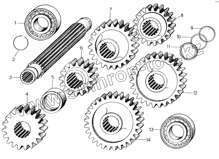 Каталог запасных частей к технике: ЧТЗ Т-170М-01. Вал второй промежуточный