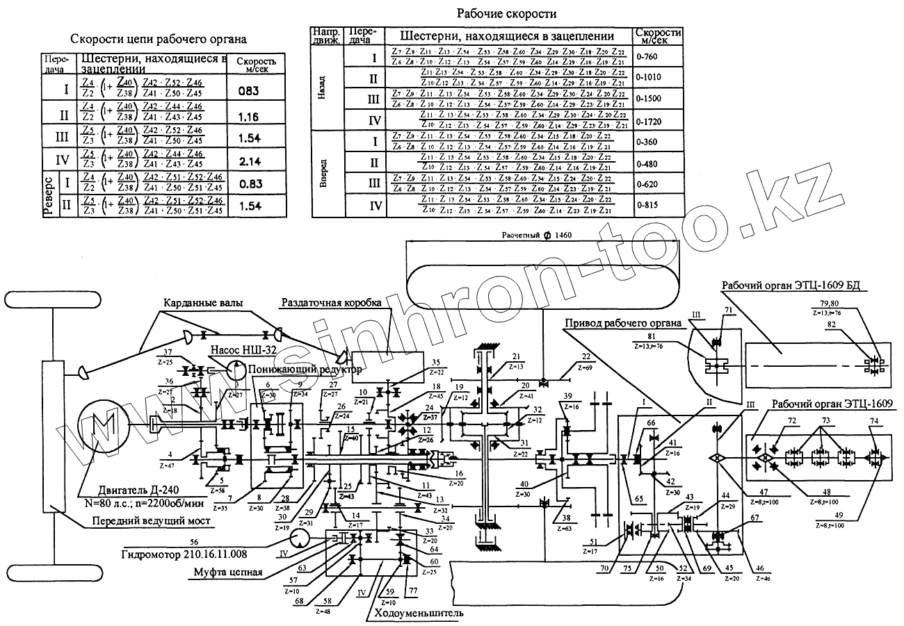 Каталог запасных частей к технике: ДЭЗ ЭТЦ-1609. Схема кинематическая