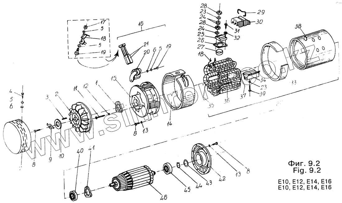 Каталог запасных частей к технике: Dimex-E-10. Электродвигатель насосный