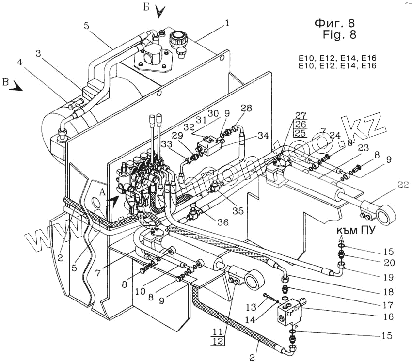 Каталог запасных частей к технике: Dimex-E-10. Гидравлическая система в сборе