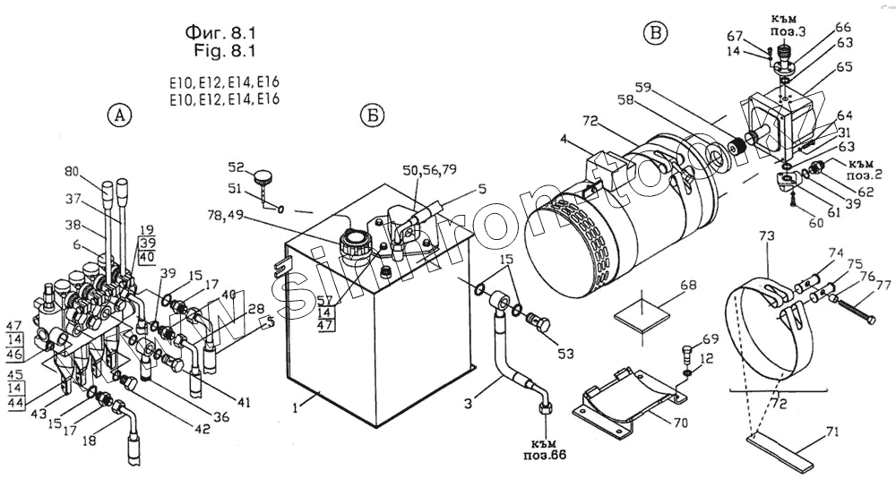 Каталог запасных частей к технике: Dimex-E-10. Гидравлическая система в сборе