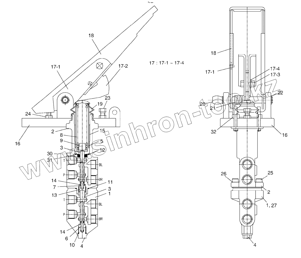 Каталог запасных частей к технике: Doosan DL220. BRAKE FOOT VALVE