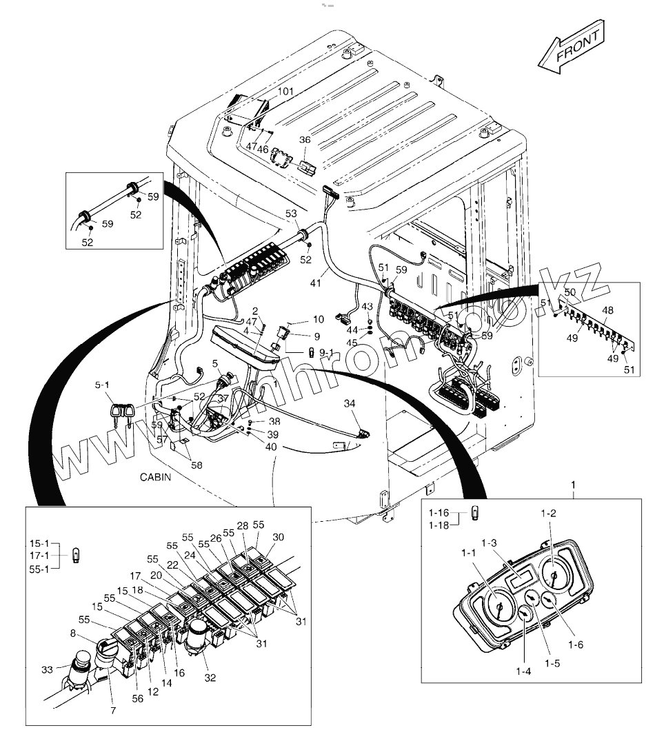 Каталог запасных частей к технике: Doosan DL220. ELECTRIC PARTS - CABIN