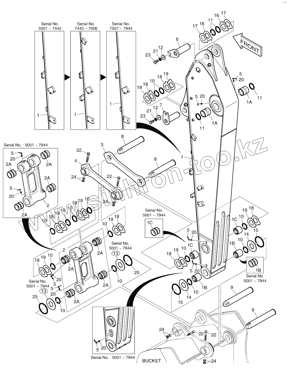 Каталог запасных частей к технике: Doosan DX140W. ARM - 2.5M