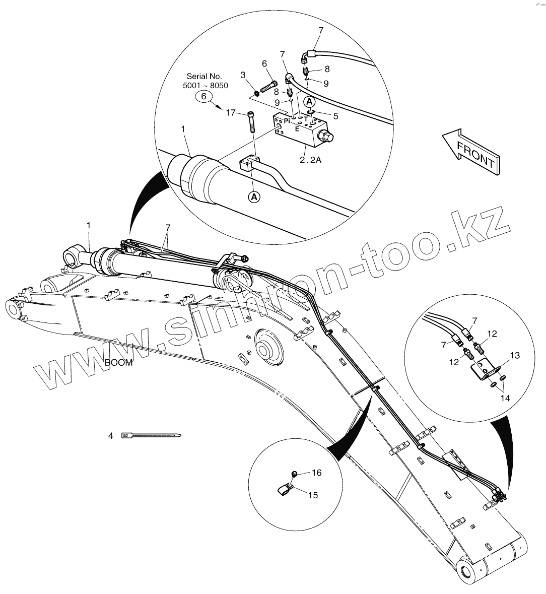 Каталог запасных частей к технике: Doosan DX140W. ARM LOCK VALVE PIPING - BOOM 4.6M
