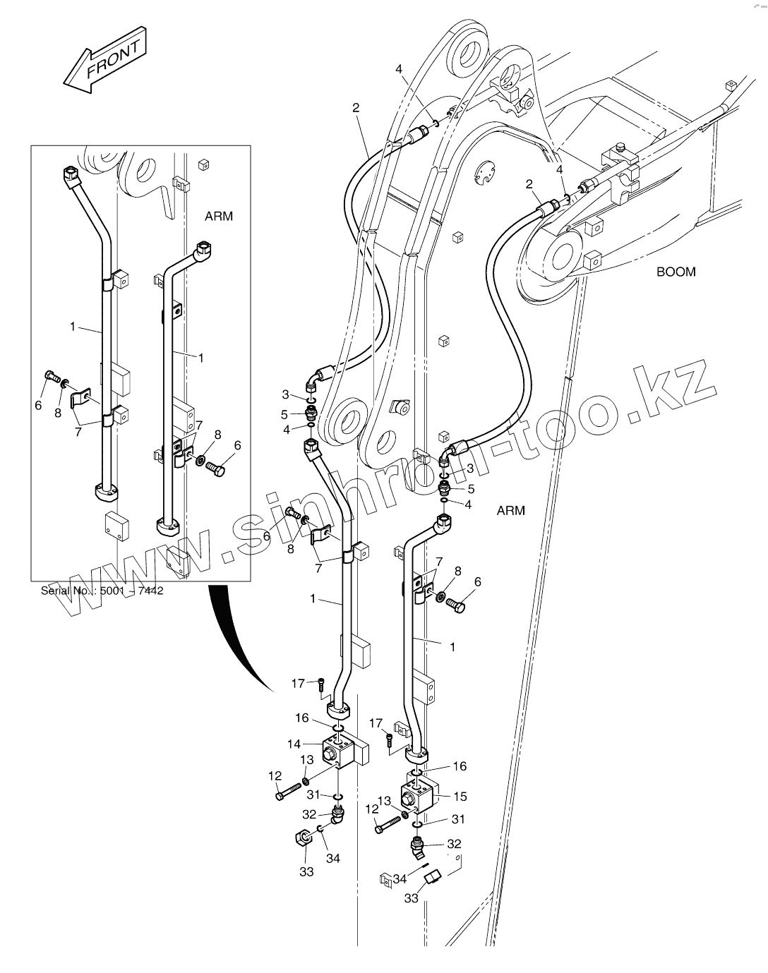 Каталог запасных частей к технике: Doosan DX140W. ARM PIPING 2.5m ROTATING