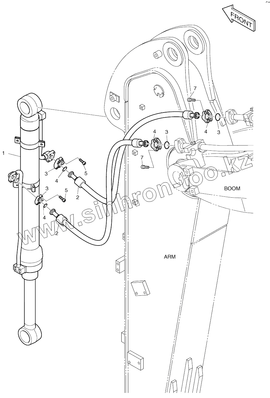 Каталог запасных частей к технике: Doosan DX140W. ARM PIPING - 2.1M
