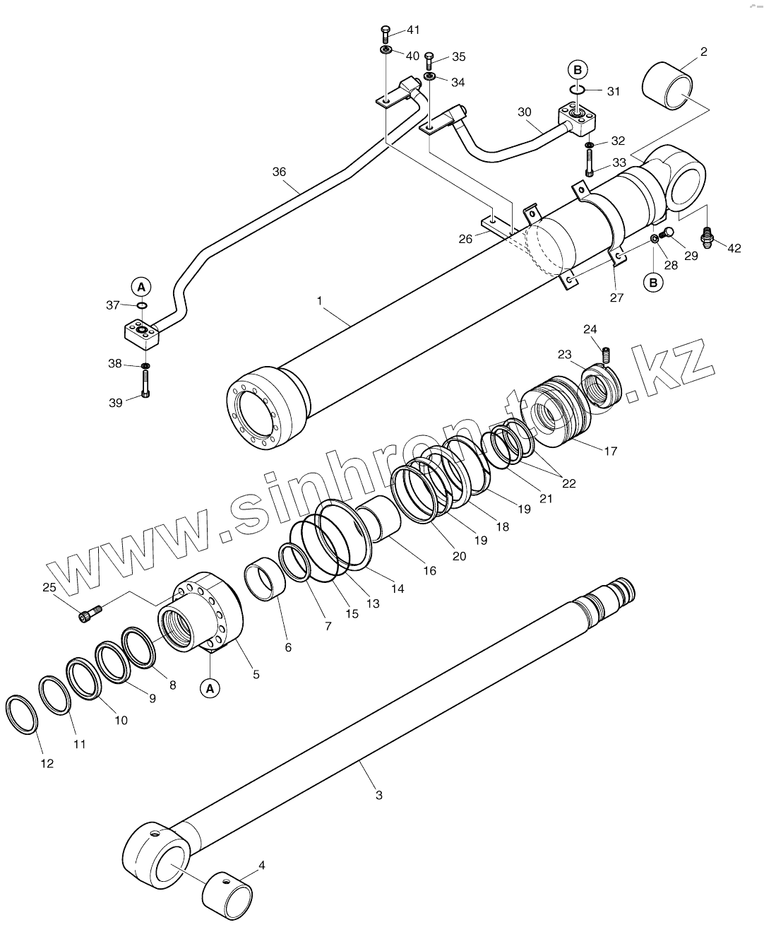 Каталог запасных частей к технике: Doosan DX140W. BOOM CYLINDER - L.H. (5001 ~ 8191)