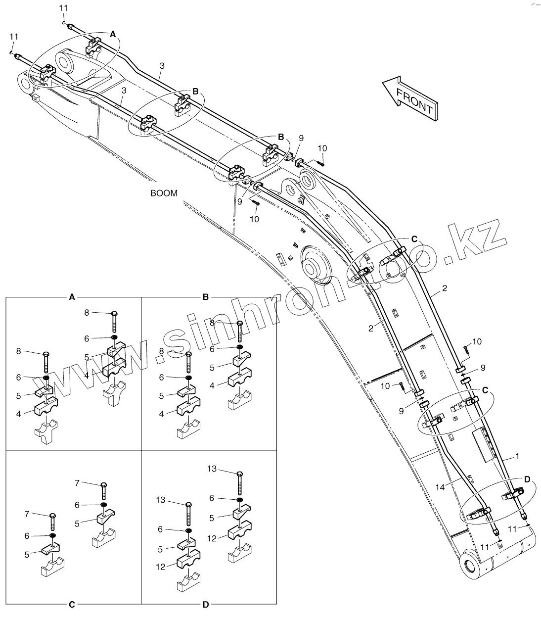 Каталог запасных частей к технике: Doosan DX140W. BOOM PIPING - BOOM 4.3M