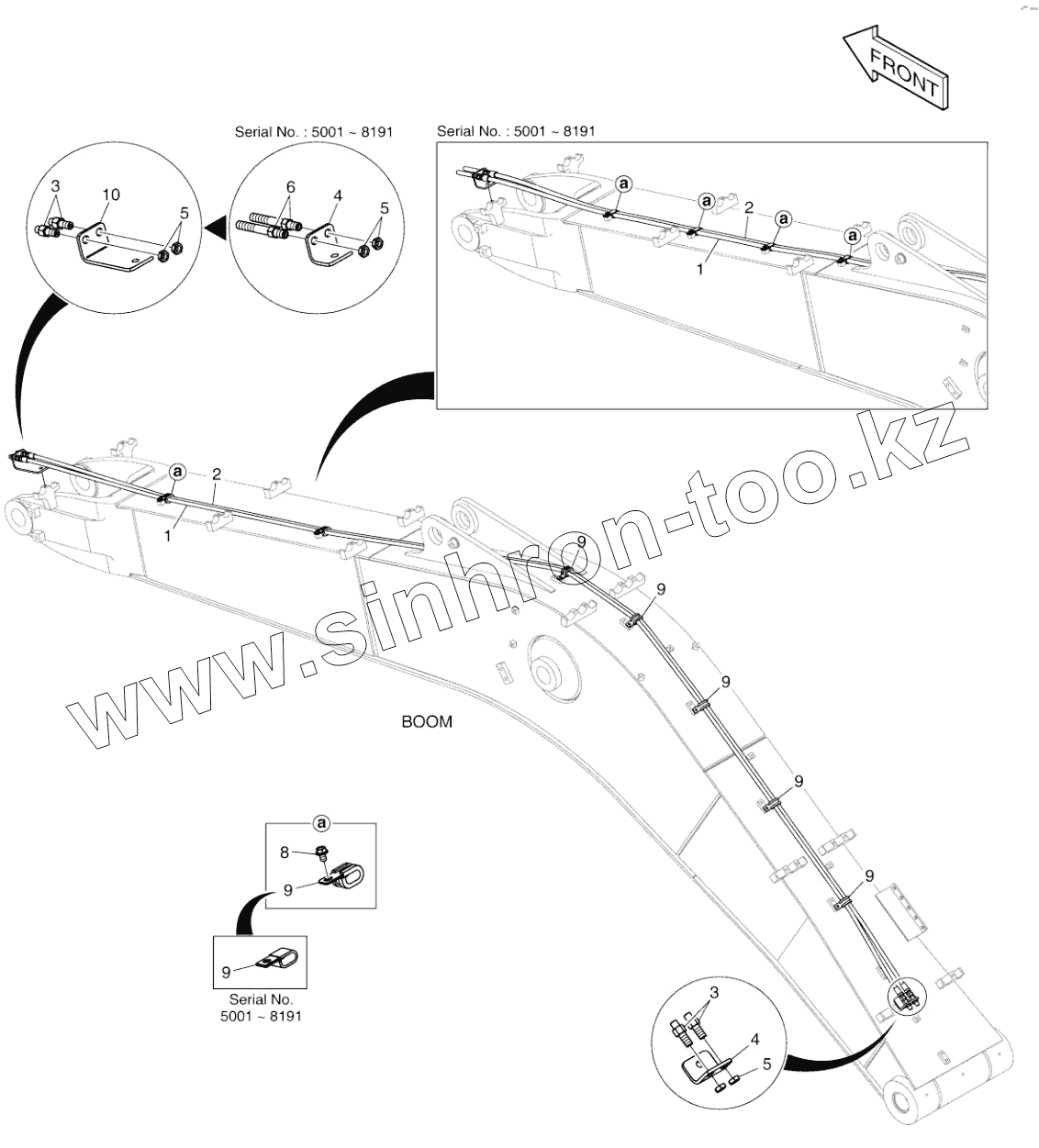 Каталог запасных частей к технике: Doosan DX140W. BOOM PIPING-QUICK CLAMP (BOOM 4.6M)