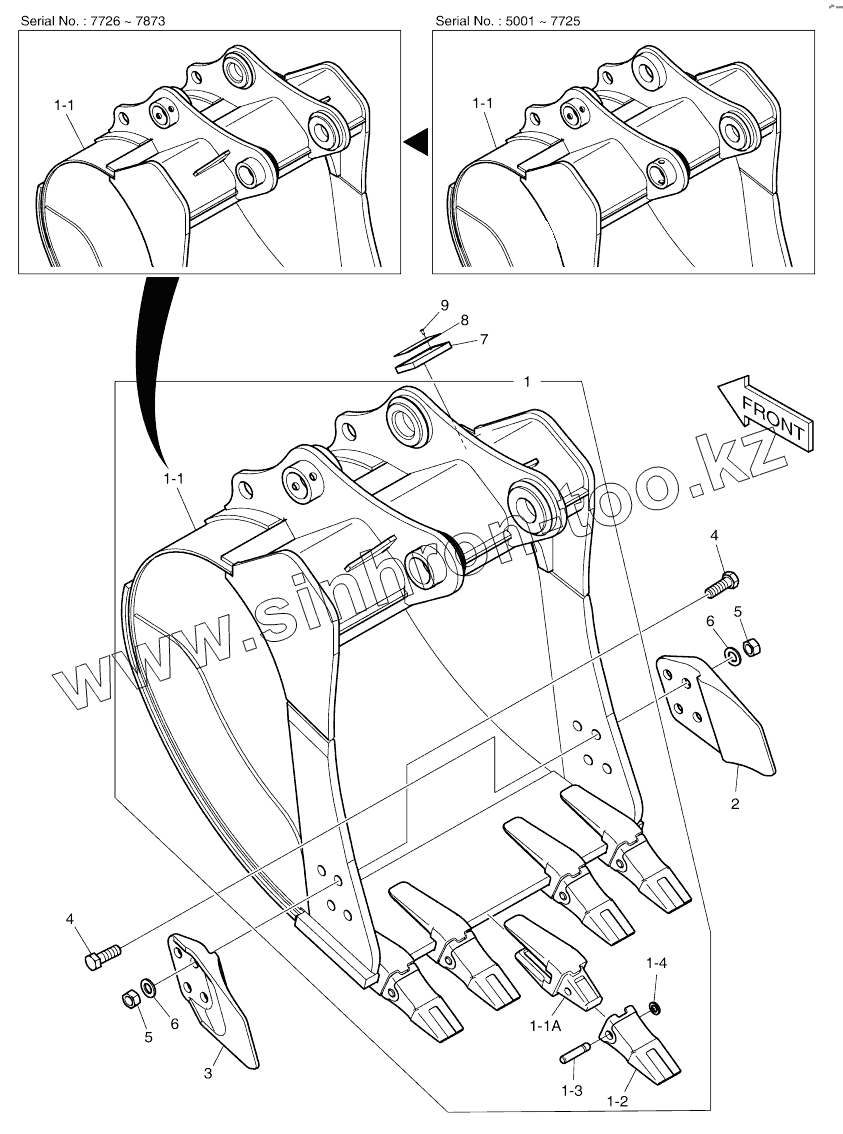 Каталог запасных частей к технике: Doosan DX140W. BUCKET ASSY - 0.48m3 (36") - SIDE PIN