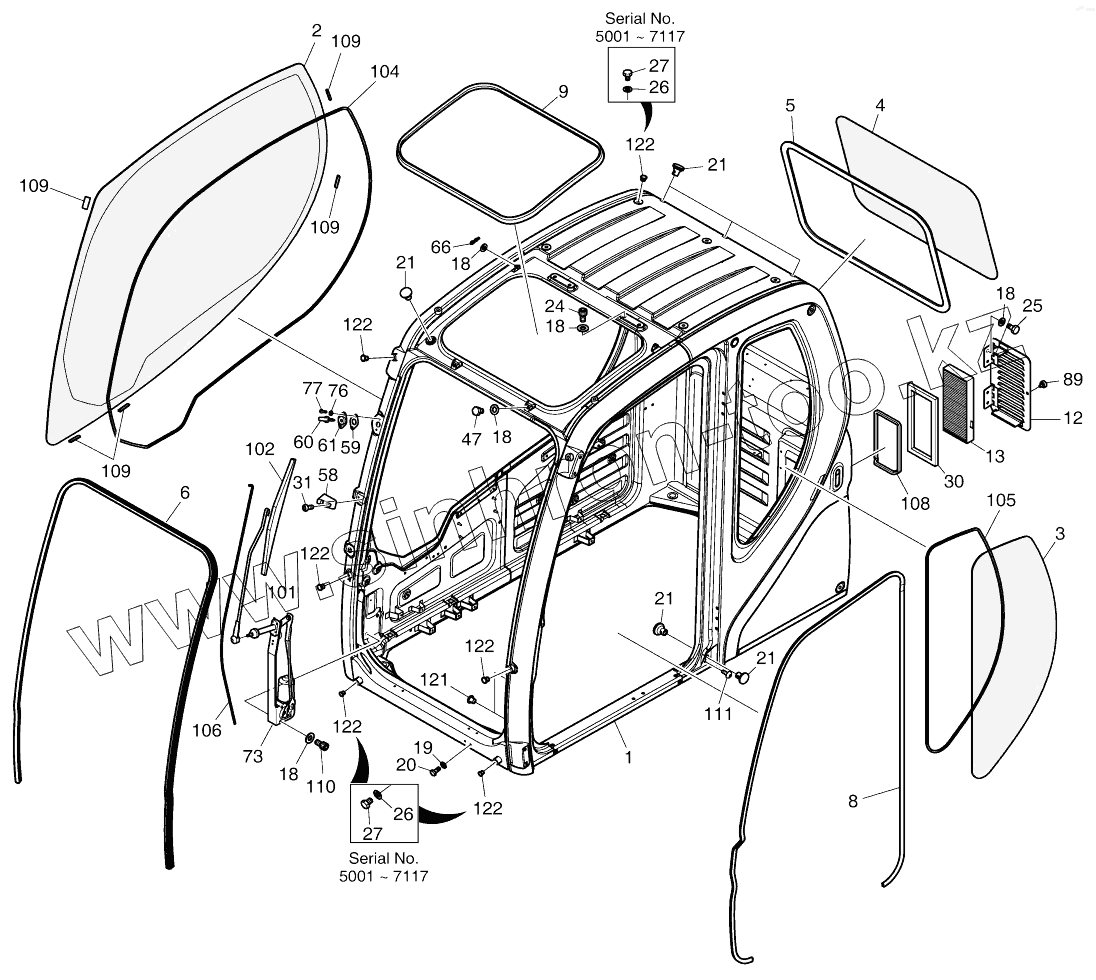 Каталог запасных частей к технике: Doosan DX140W. CABIN (1)