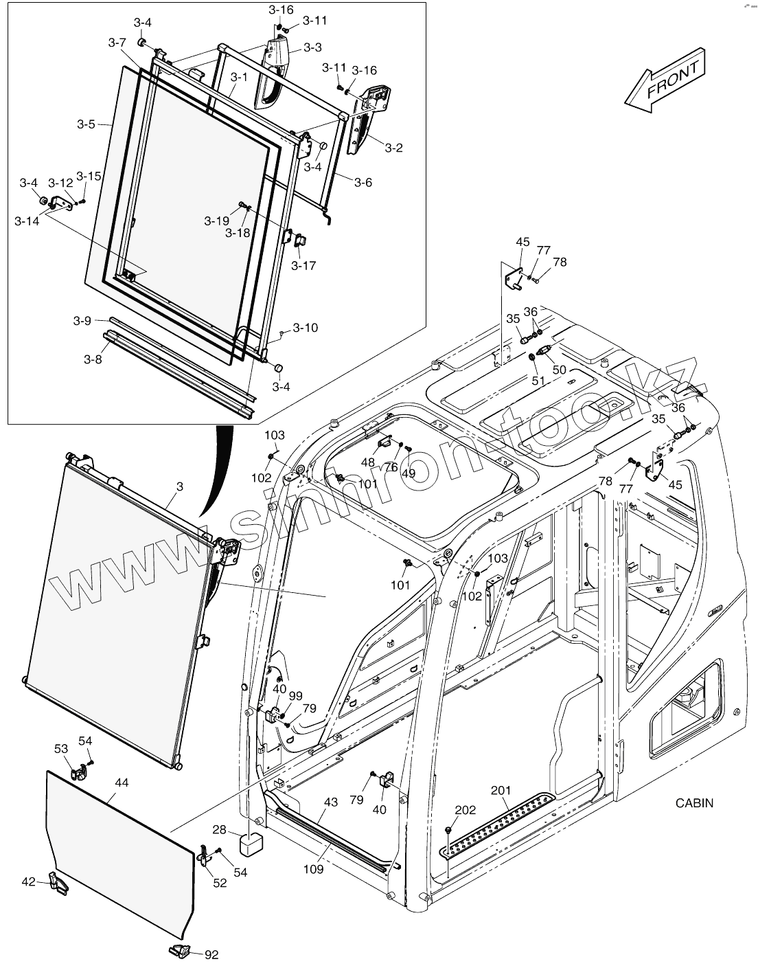 Каталог запасных частей к технике: Doosan DX140W. CABIN (2) - ROPS