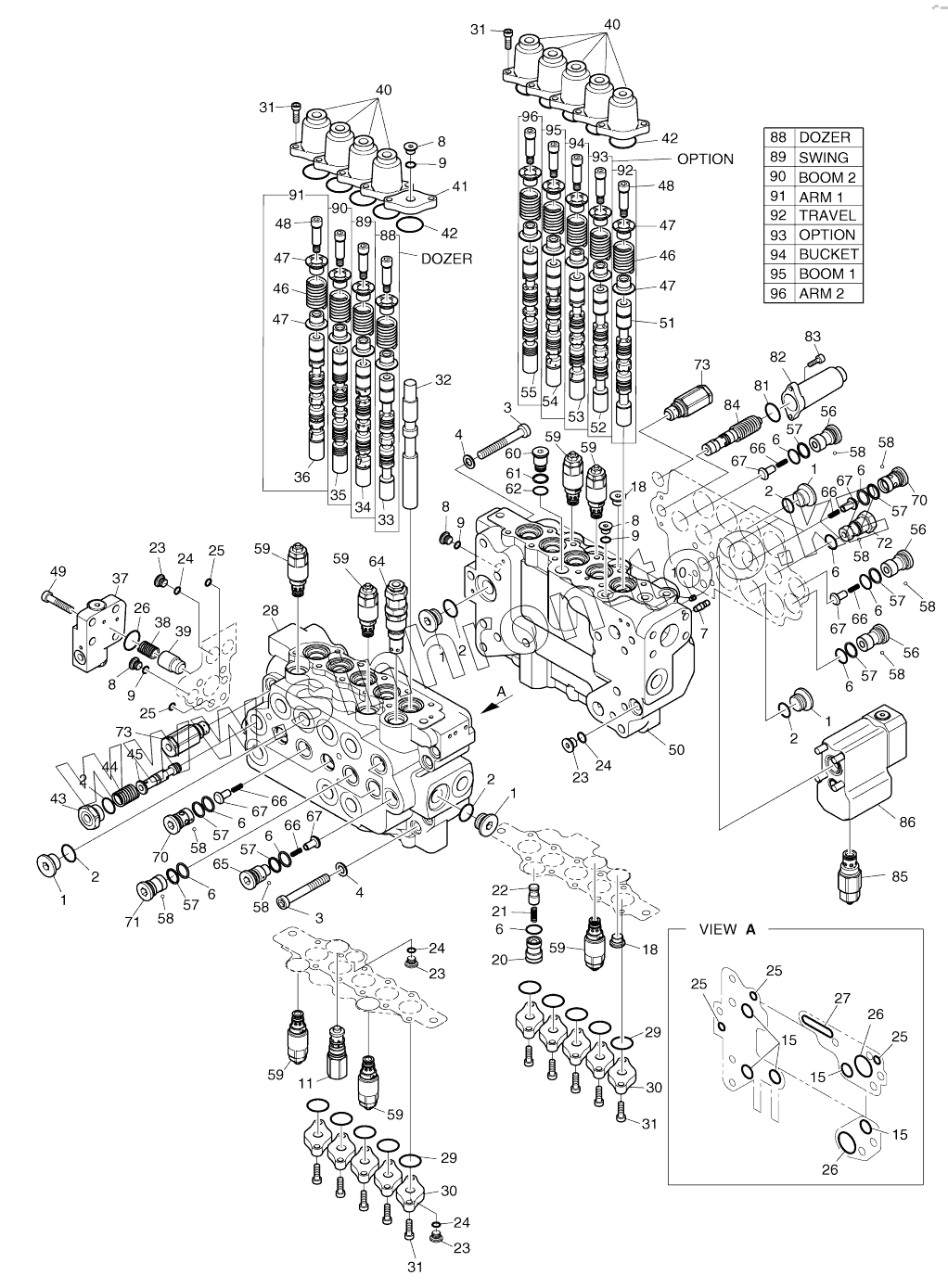 Каталог запасных частей к технике: Doosan DX140W. CONTROL VALVE