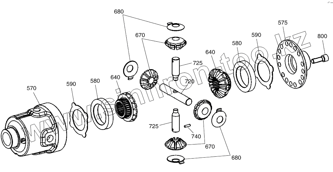 Каталог запасных частей к технике: Doosan DX140W. DIFFERENTIAL GEAR - FRONT AXLE (7505~8165)
