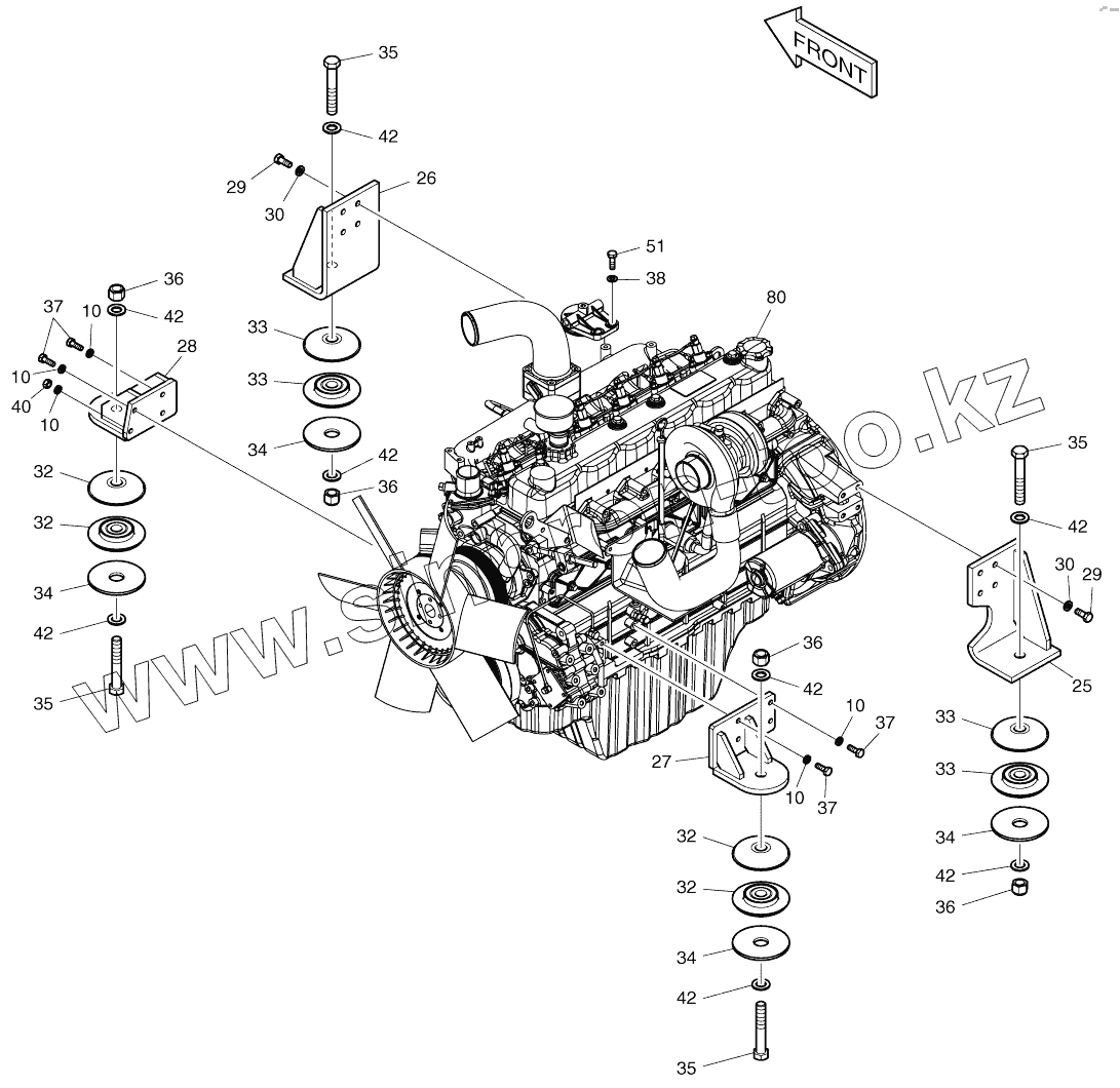 Каталог запасных частей к технике: Doosan DX140W. ENGINE MOUNTING