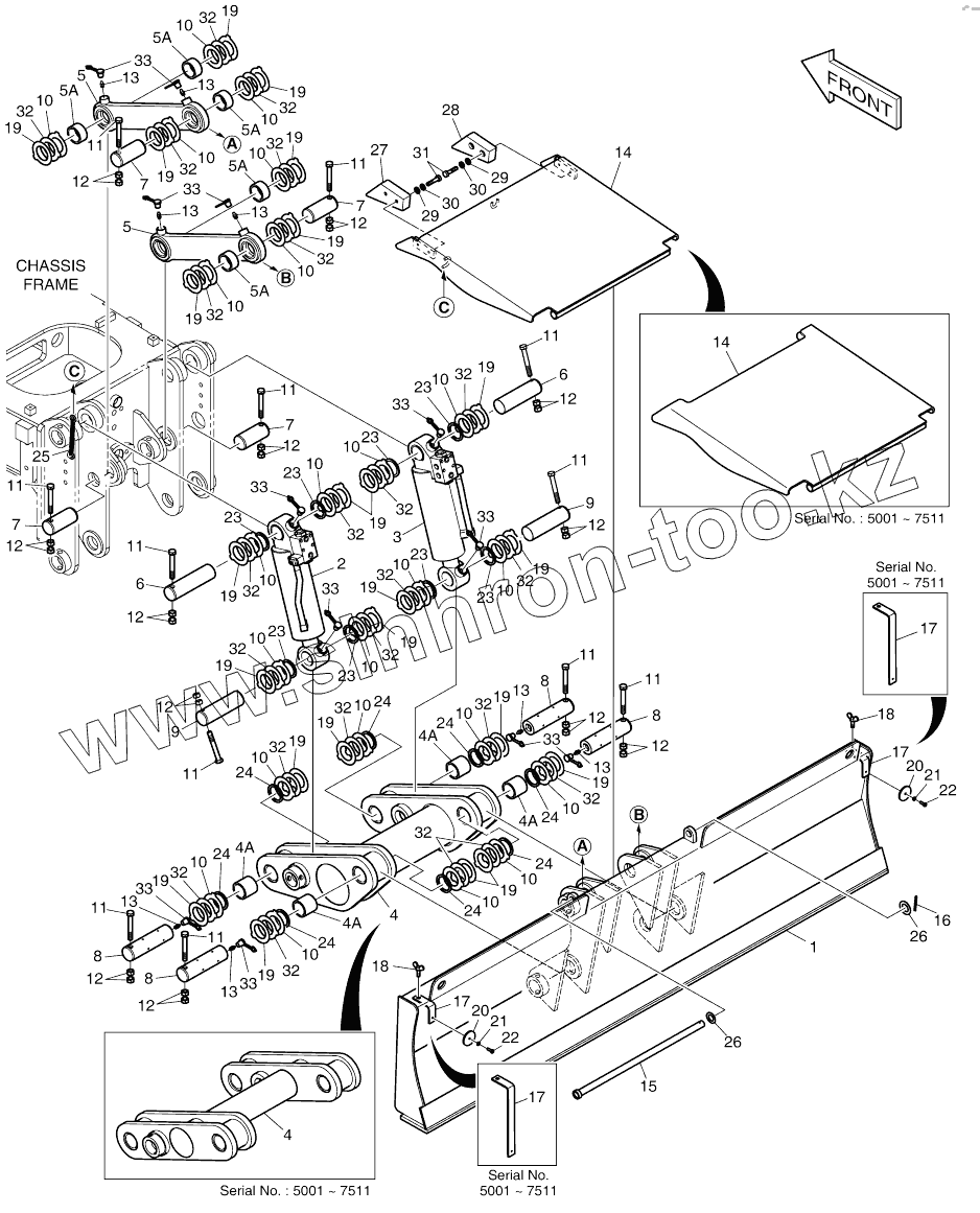 Каталог запасных частей к технике: Doosan DX140W. FRONT DOZER