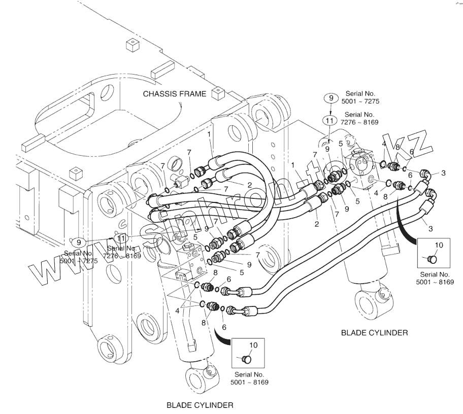 Каталог запасных частей к технике: Doosan DX140W. FRONT DOZER PIPING