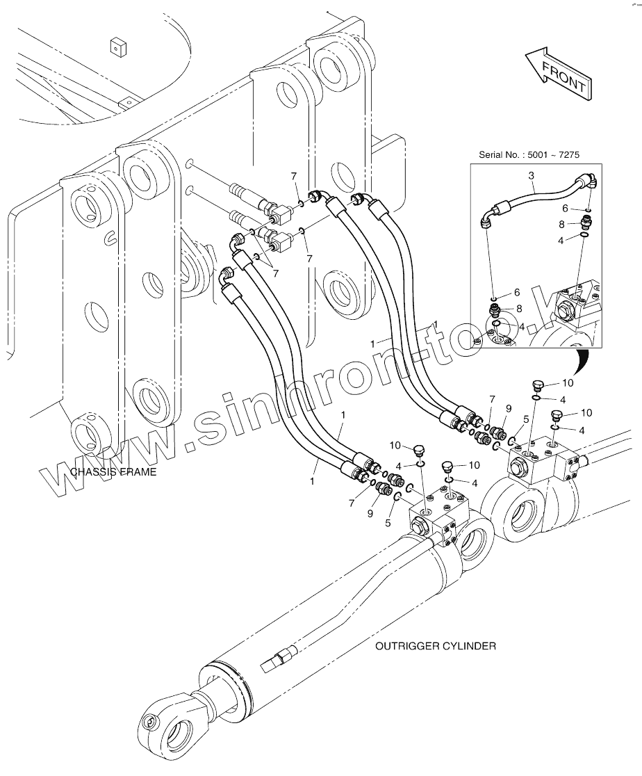 Каталог запасных частей к технике: Doosan DX140W. FRONT/REAR OUTRIGGER PIPING