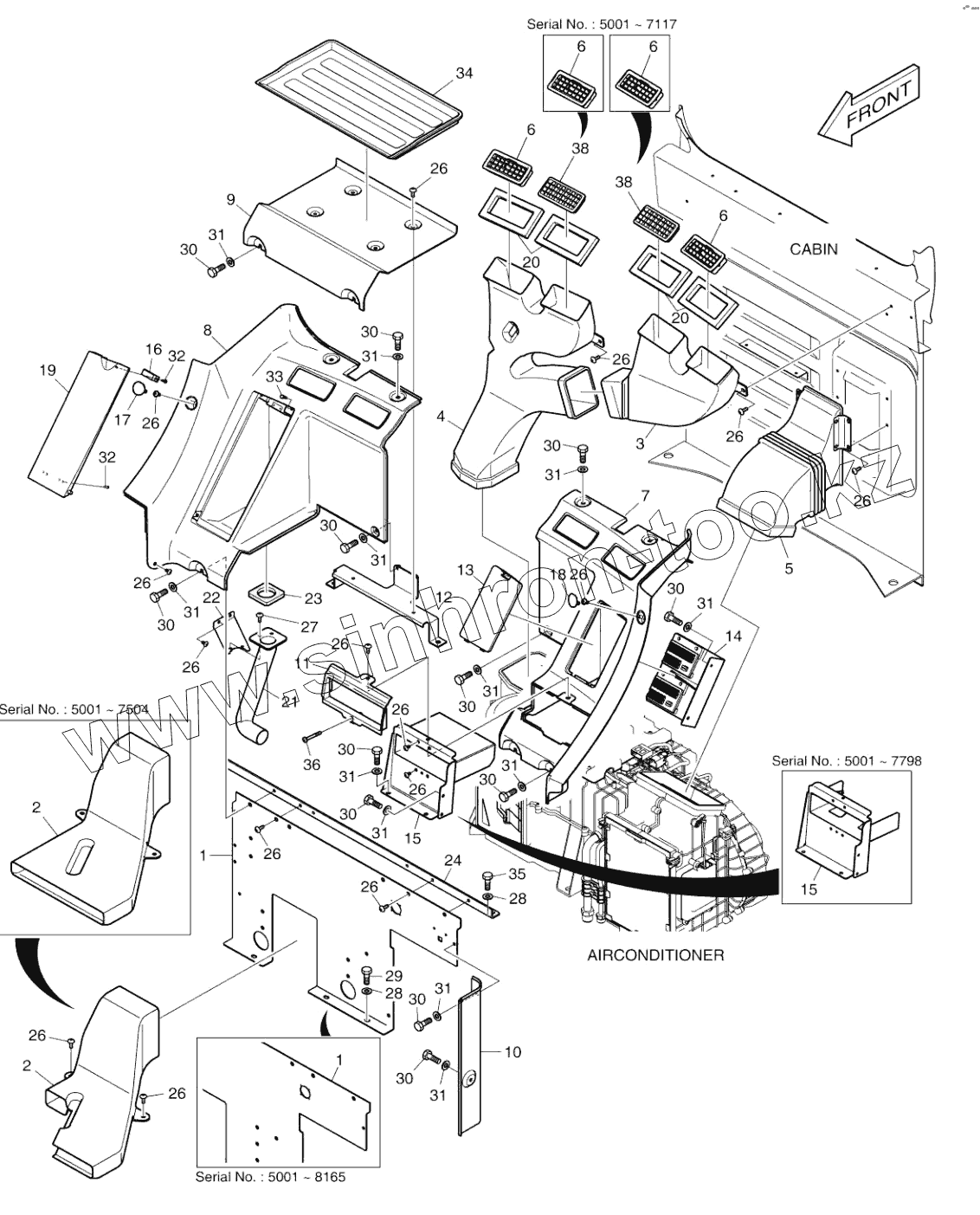 Каталог запасных частей к технике: Doosan DX140W. HEATER COVER
