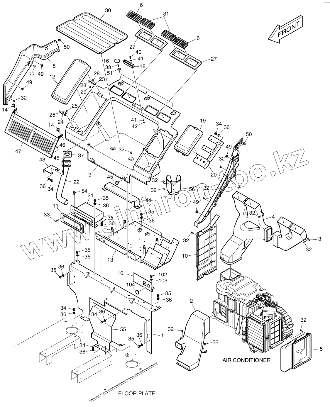 Каталог запасных частей к технике: Doosan DX140W. HEATER COVER - ROPS