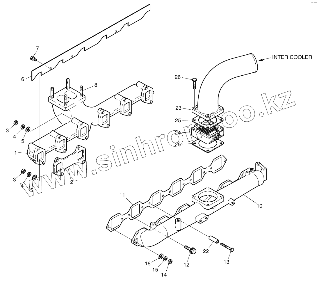 Каталог запасных частей к технике: Doosan DX140W. INTAKE AND EXHAUST MANIFOLD