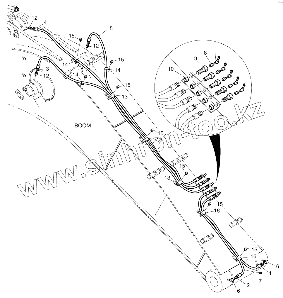 Каталог запасных частей к технике: Doosan DX140W. LUBRICATION PIPING - BOOM