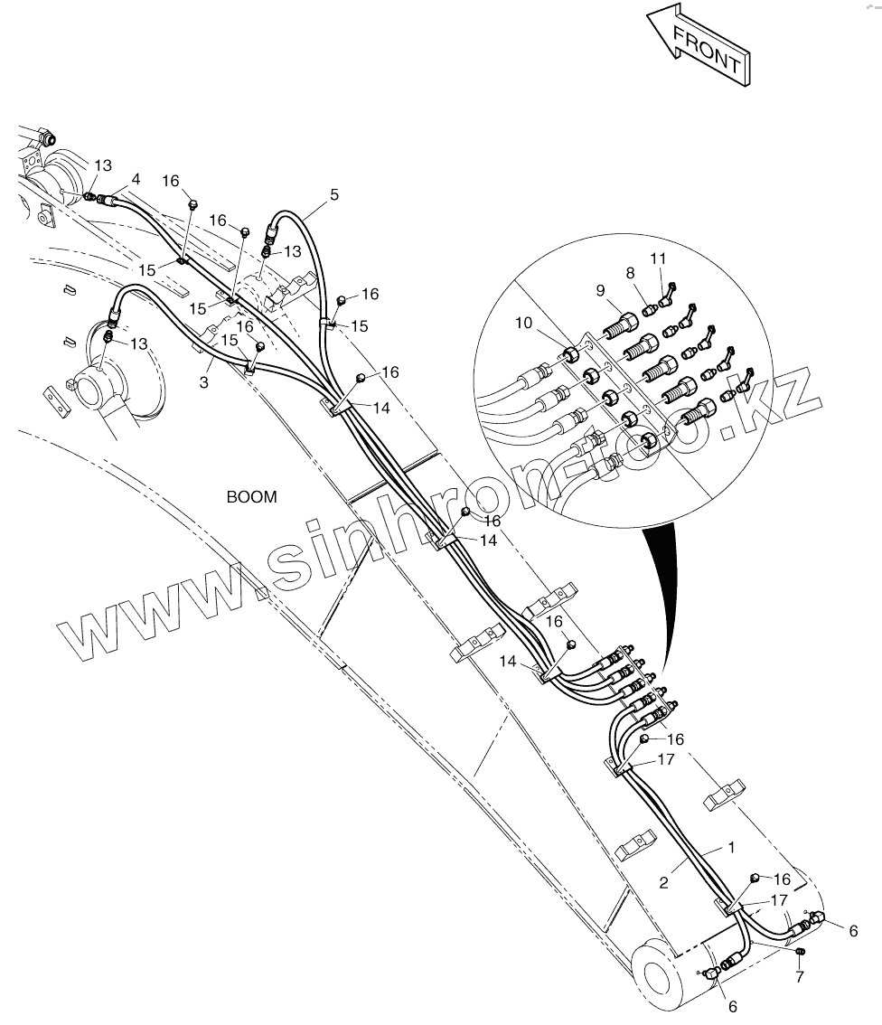 Каталог запасных частей к технике: Doosan DX140W. LUBRICATION PIPING - BOOM 4.6M