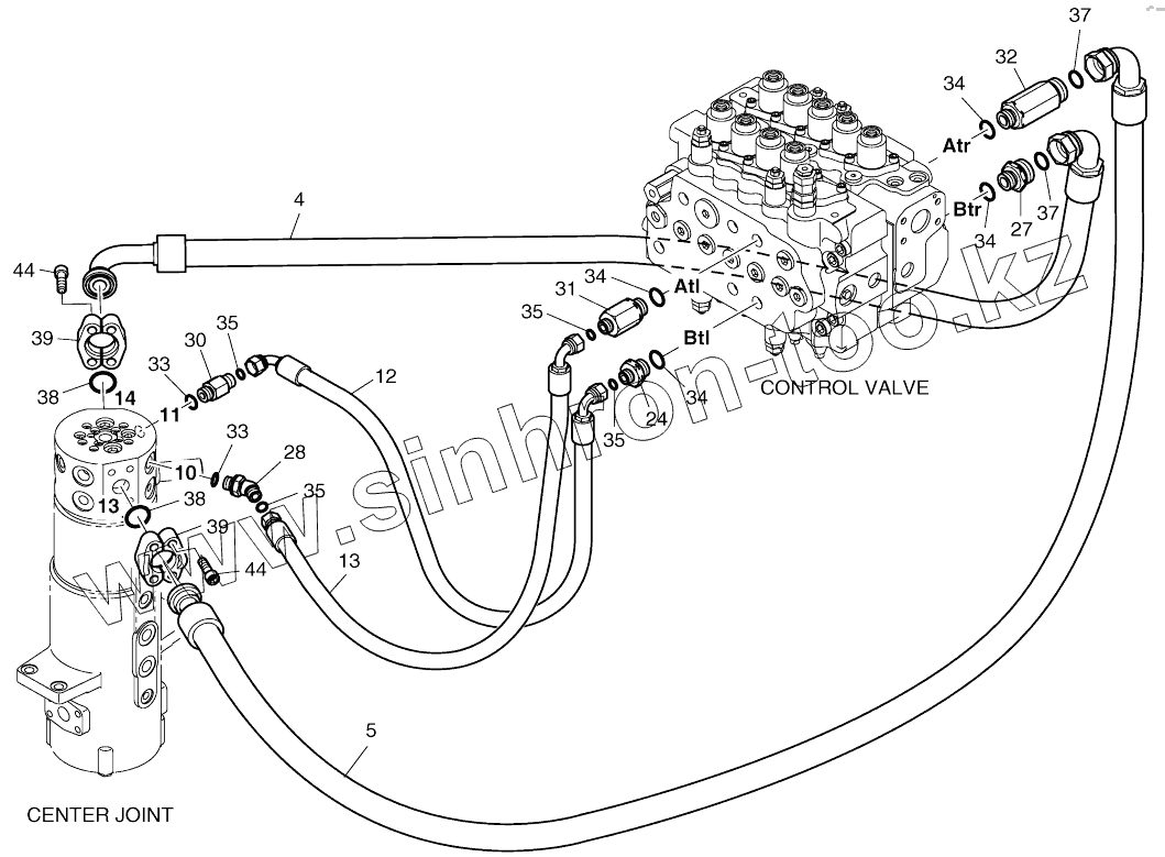 Каталог запасных частей к технике: Doosan DX140W. MAIN PIPING (2) - TRAVEL