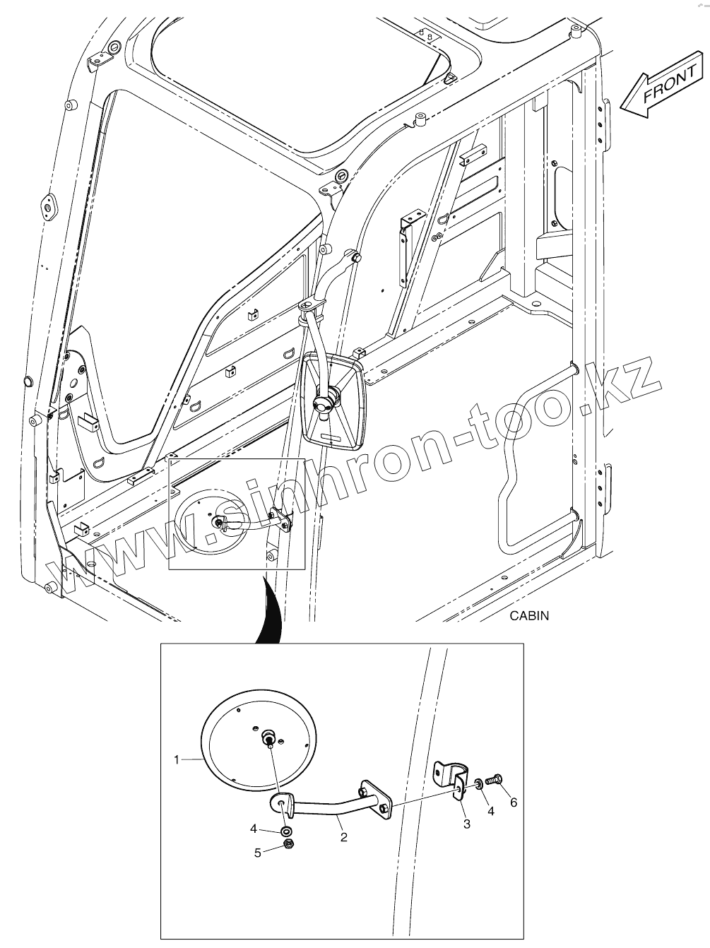 Каталог запасных частей к технике: Doosan DX140W. MIRROR - ADDITIONAL (CABIN)
