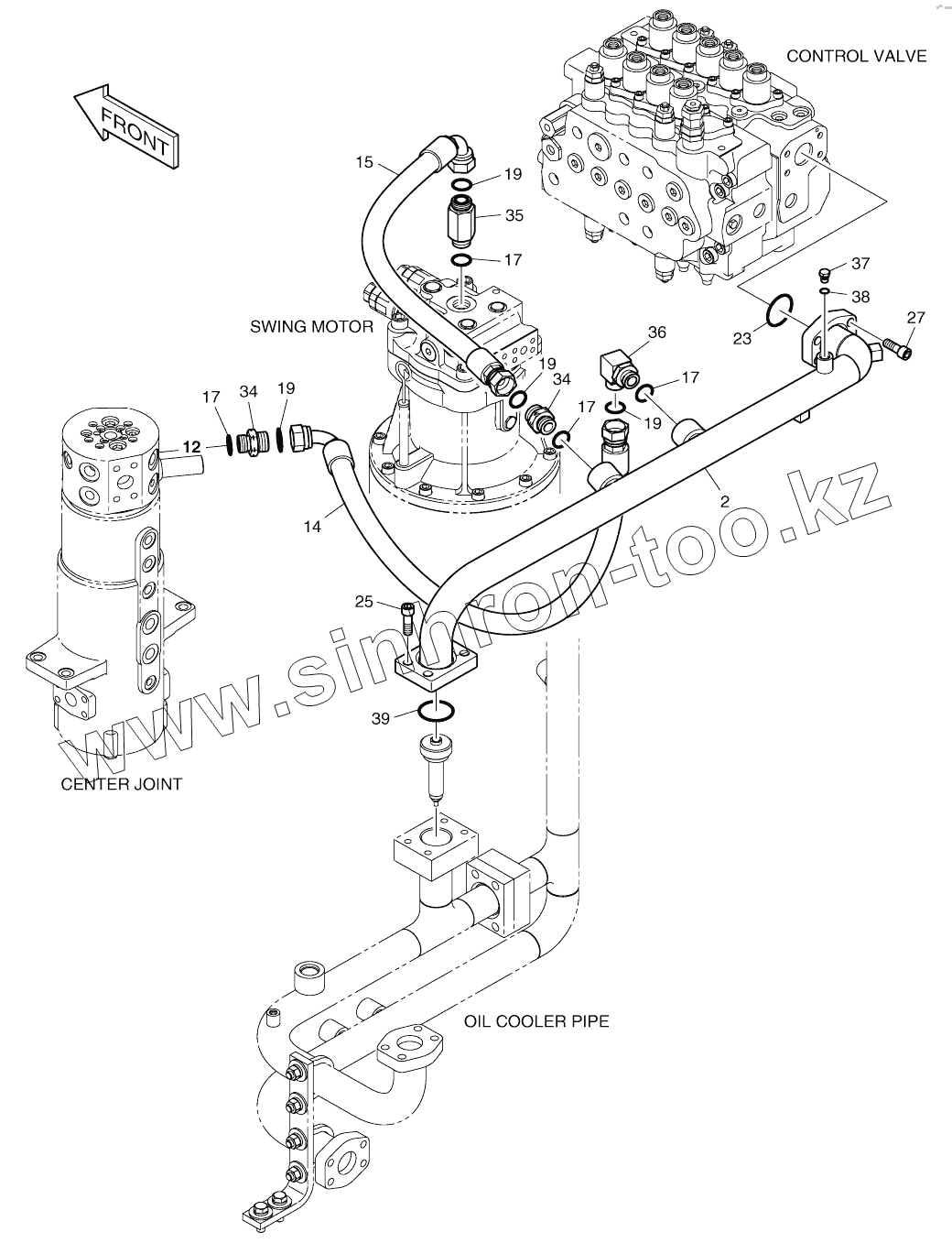 Каталог запасных частей к технике: Doosan DX140W. OIL COOLER PIPING (3)