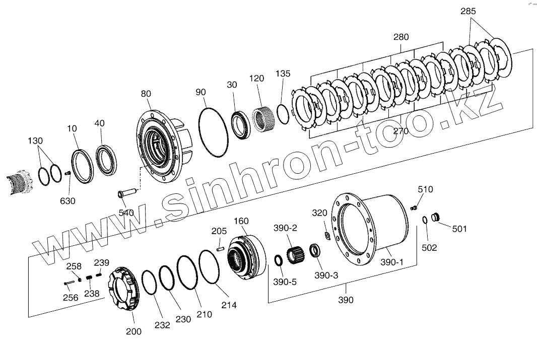 Каталог запасных частей к технике: Doosan DX140W. OUTPUT - FRONT AXLE (7505 ~8165)