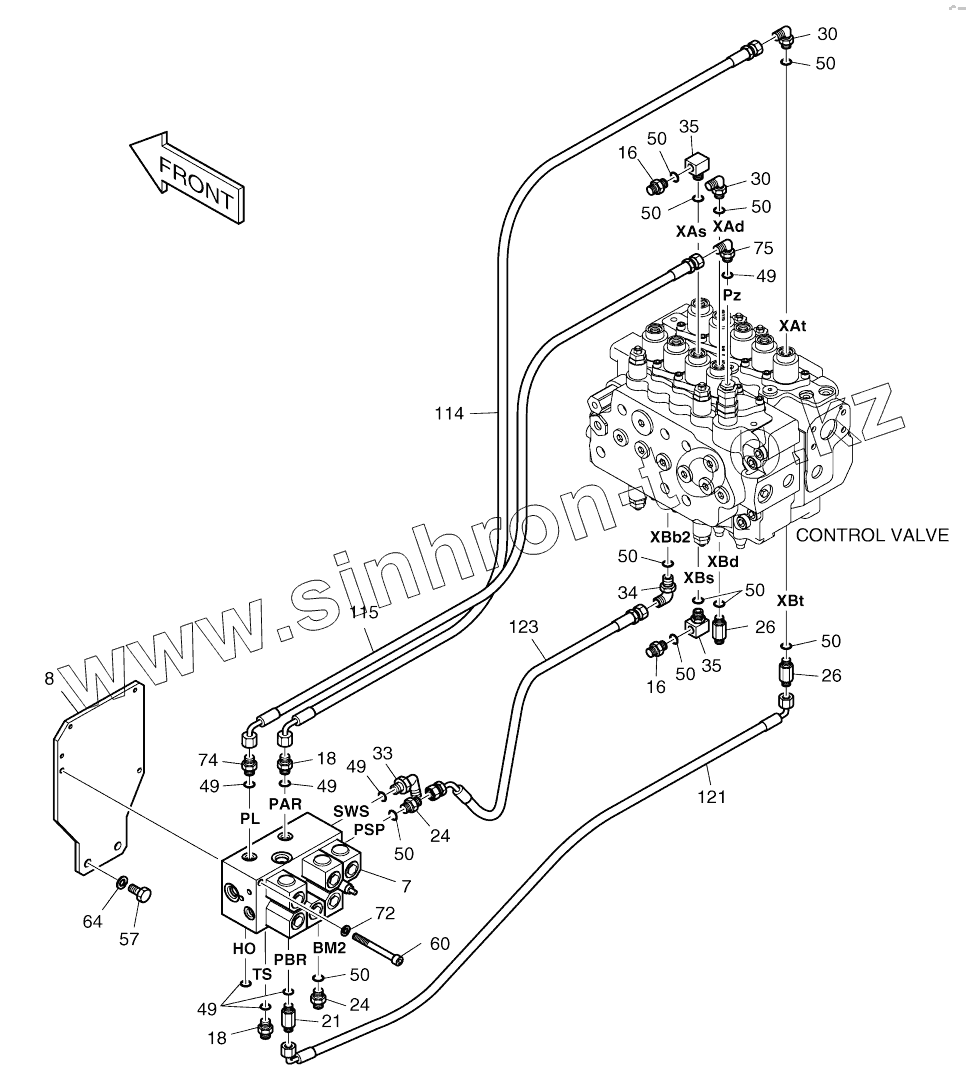 Каталог запасных частей к технике: Doosan DX140W. PILOT PIPING (2)