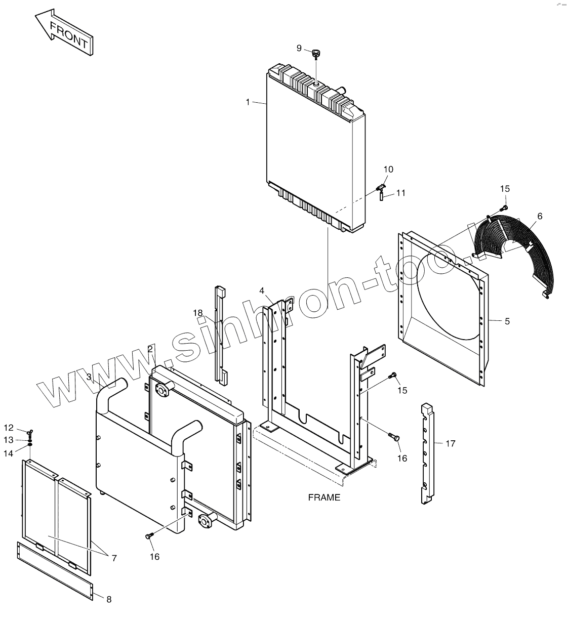 Каталог запасных частей к технике: Doosan DX140W. RADIATOR (5001 ~ 7986)