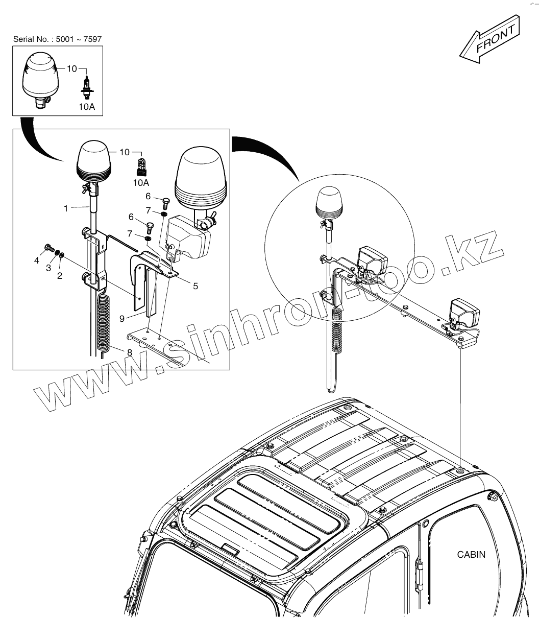 Каталог запасных частей к технике: Doosan DX140W. ROTATING BEACON (TELESCOPIC) WITH LAMP