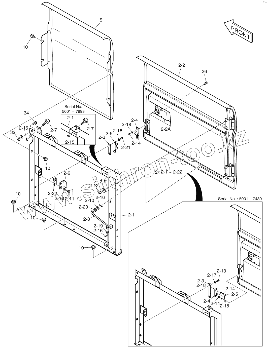 Каталог запасных частей к технике: Doosan DX140W. SIDE DOOR - R.H.